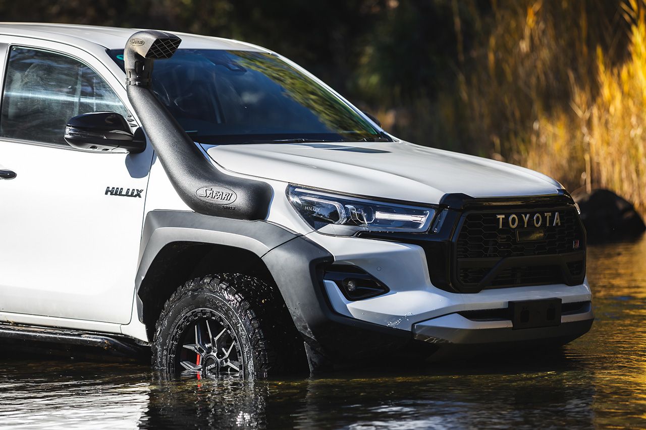 When it comes to serious off-roading, maximizing your vehicle's performance is key. With the increasing demand for engine management enhancements and larger exhaust systems, Safari 4x4 has developed a snorkel that goes beyond simply raising the air intake to protect your engine from water and dust ingress. The Safari ARMAX snorkel is meticulously engineered to deliver an impressive +50% increase in airflow over the standard air intake assembly, allowing you to maximise the performance potential of your Toyota Hilux GR Sport 09/2023 onwards 2.8L Diesel 165KW Diesel engine.